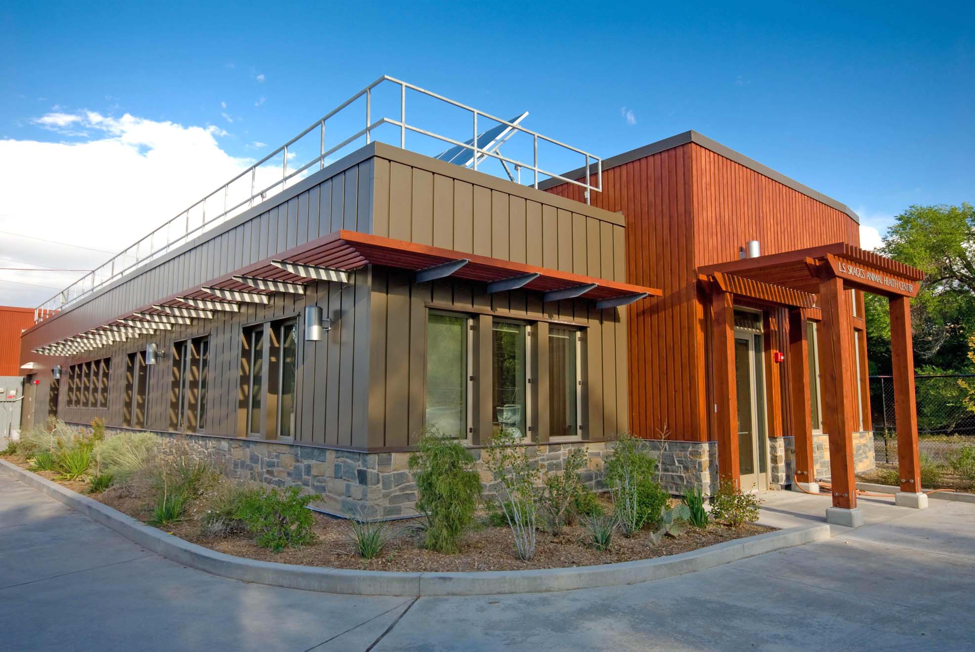The Animal Health Center is LEED Gold Certified. Key features of the design include a rooftop photovoltaic array which provides over 20% of the building’s energy needs, daylighting strategies to enhance occupant comfort and reduce energy use, and the use of sustainable materials throughout the building.