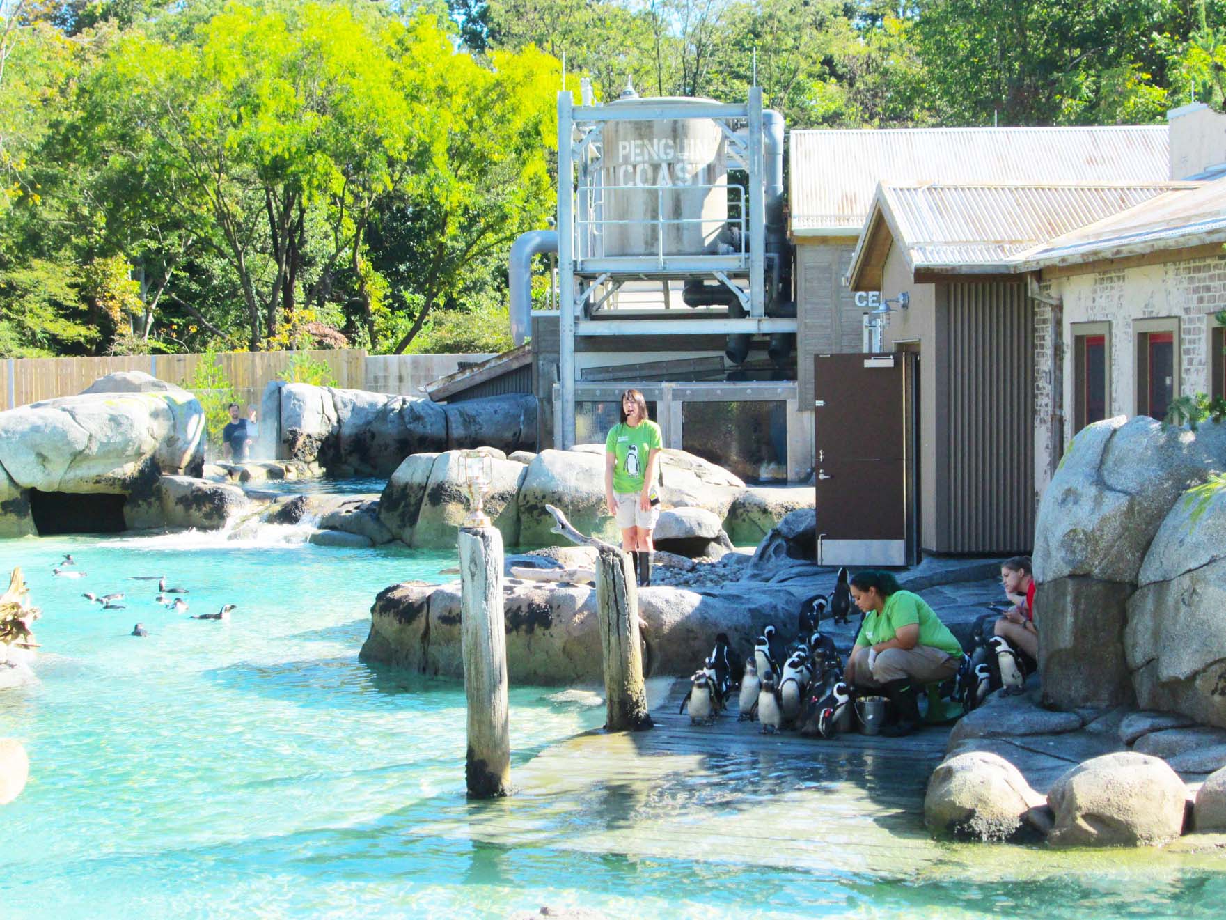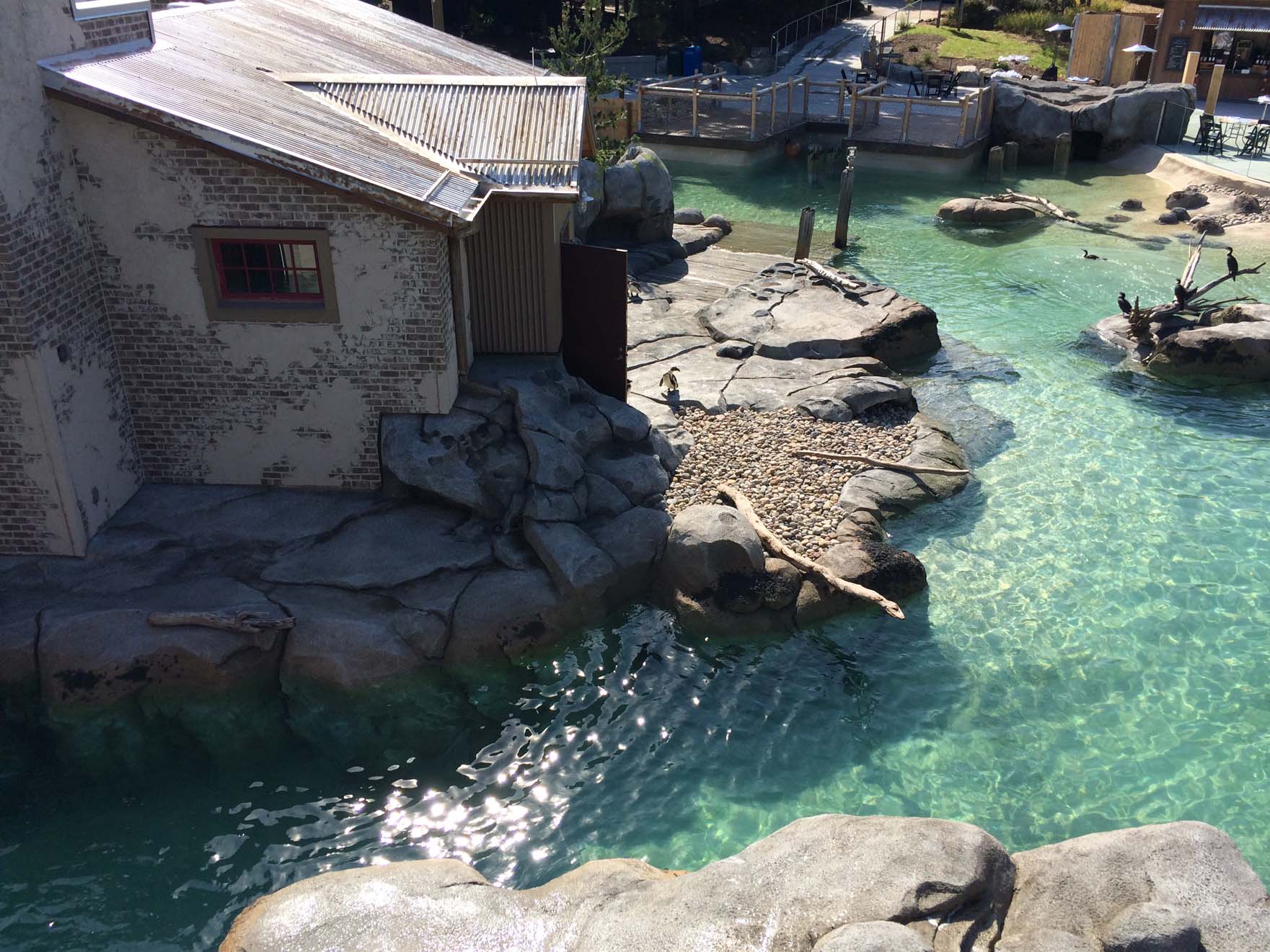 Modeled upon the theme of an abandoned guano mining settlement near the Namibian Skeleton Coast, Penguin Coast houses a large collection of African Penguins along with White-Breasted Cormorants. The design of the overall exhibit provides a rare viewing experience that incorporates various habitat and landscape conditions, designated feeding demonstration areas, and a small amphitheater for educational presentations by the education staff. Underwater and above water viewing is supplemented with dynamic water features such as wave crash and tidal action as well as strong channel currents that allow for natural penguin activity and an exciting guest experience. Additional fee based animal-visitor “beak-to-cheek” interaction is available through special Penguin Encounter tours which provide guided keeper experiences and special photo opportunities.